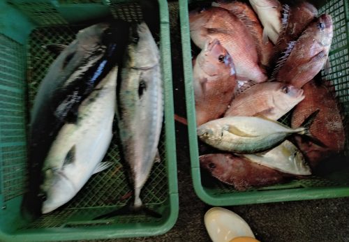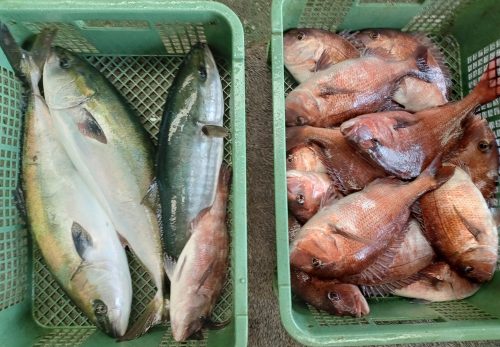 ヒラマサ、オリーブハマチ(ワラサ)、シマアジ、イサキです。
